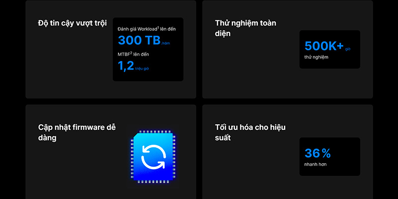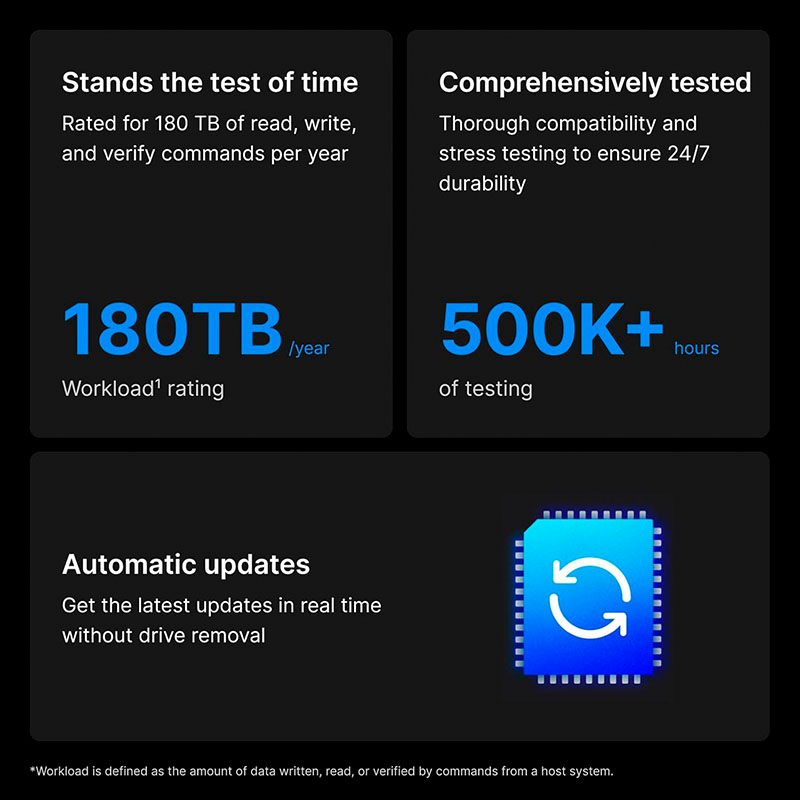 Ổ cứng có mức tiêu thụ điện năng 2.8W khi idle và khoảng 3.1W khi đọc/ghi ngẫu nhiên, phù hợp cho hệ thống NAS cần tiết kiệm năng lượng. Nhờ khả năng vận hành ổn định và êm ái, sản phẩm giúp giảm chi phí điện năng hàng tháng mà vẫn đảm bảo hiệu suất. Đây là một lợi thế lớn cho doanh nghiệp vừa và nhỏ hoặc cá nhân cần vận hành NAS liên tục.