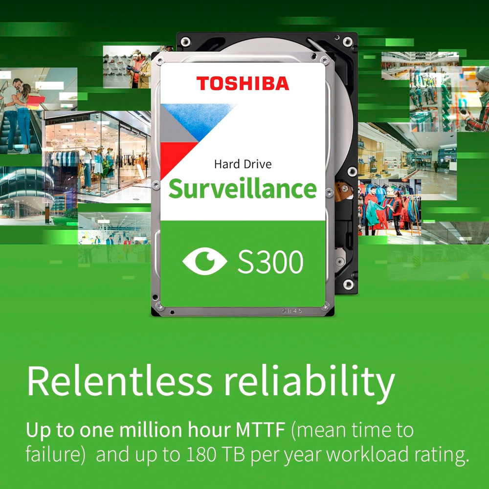 Đặc thù của hệ thống an ninh là không bao giờ được phép tắt, và ổ cứng S300 sinh ra để đáp ứng điều đó. Sản phẩm được chế tạo từ các linh kiện cao cấp, hỗ trợ khả năng ghi chép dữ liệu cường độ cao (lên đến 180TB/năm) và hoạt động bền bỉ suốt 24 giờ mỗi ngày, 7 ngày mỗi tuần. Công nghệ độc quyền từ Toshiba giúp thiết bị chịu được sự dao động nhiệt độ khắc nghiệt thường thấy bên trong các tủ rack hay thùng máy đầu ghi hình chật hẹp, mang lại sự an tâm tuyệt đối cho hệ thống an ninh của bạn.