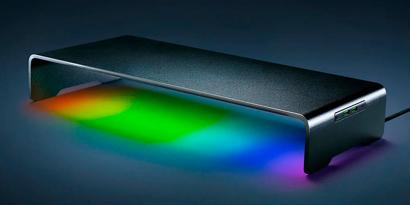 Kệ màn hình được tích hợp hệ thống LED RGB Chroma độc quyền từ Razer, cung cấp 16.8 triệu màu và nhiều hiệu ứng ánh sáng động, giúp đồng bộ hoàn hảo với hệ sinh thái Razer Chroma. Người dùng có thể tùy chỉnh ánh sáng thông qua phần mềm Razer Synapse, tạo nên không gian làm việc đầy phong cách và ấn tượng.