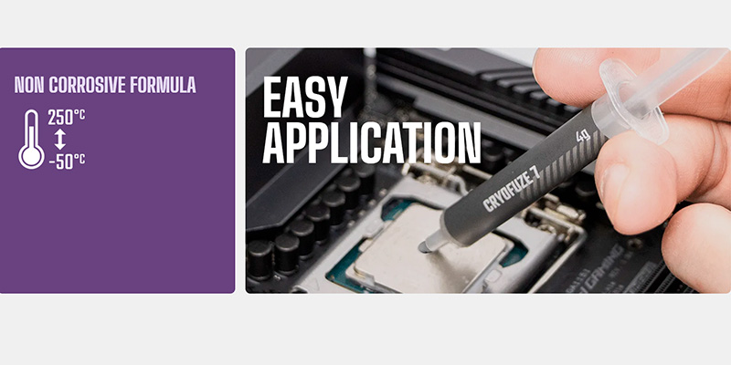 Kem tản nhiệt Cooler Master CRYOFUZE 7 được thiết kế với độ nhớt cân bằng, giúp việc áp dụng trở nên dễ dàng và chính xác. Bạn có thể dễ dàng trải đều kem trên bề mặt của CPU hoặc GPU mà không gặp khó khăn. Điều này không chỉ đảm bảo hiệu suất tản nhiệt tối ưu mà còn giúp việc vệ sinh và thay thế kem tản nhiệt trở nên đơn giản hơn.