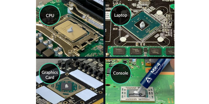 Bề mặt của chip xử lý được bao phủ bởi các vết lõm siêu nhỏ; Kem tản nhiệt Thermal Arctic MX-4 bao gồm các vi hạt carbon lấp đầy các lỗ hổng này. Mang đến khả năng dẫn nhiệt cực cao, đảm bảo rằng nhiệt được tản ra khỏi CPU hoặc GPU một cách nhanh chóng và hiệu quả.