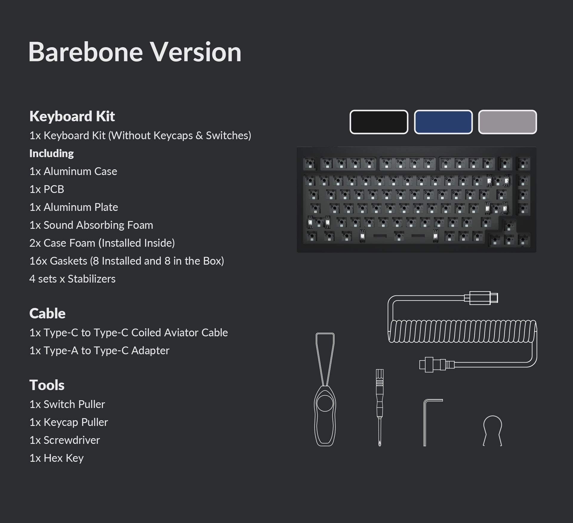Double Gasket Mount Double Gasket Mount là sự cải tiến vượt bậc so với Gasket Mount thông thường bằng việc bố trí Gasket trên PCB cùng miếng đệm silicon giữa bottom case và top case giúp giảm thiểu tiếng ồn của kim kim loại. |