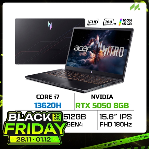 Laptop Acer Nitro V 15 ProPanel ANV15-52-72BM NH.QZ9SV.004 sở hữu sức mạnh đến từ bộ vi xử lý Intel Core i7-13620H với 10 nhân và 16 luồng, xung nhịp tối đa lên đến 4.9GHz và bộ nhớ đệm 24MB, đảm bảo khả năng xử lý mượt mà mọi tác vụ từ công việc văn phòng, học tập, đến các ứng dụng sáng tạo nội dung hay chơi game nặng. Kết hợp cùng kiến trúc hiệu suất lai của Intel, máy mang lại tốc độ phản hồi nhanh và tiết kiệm điện năng hơn, giúp người dùng duy trì hiệu suất cao trong suốt thời gian dài.