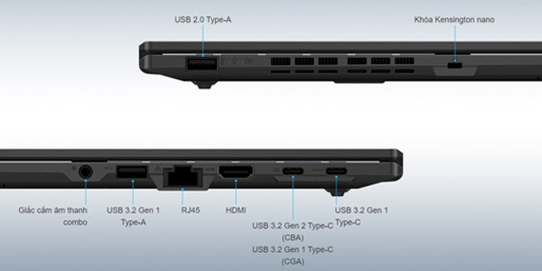 Laptop Asus ExpertBook B1 B1402 được trang bị đầy đủ các cổng I/O, cho phép làm việc hiệu suất tăng cường. Các thiết bị này cũng được trang bị USB Type-A, USB Type- C, đầu ra HDMI, đồng thời có thể kết nối với mạng có dây với địa chỉ MAC riêng giúp quản lý dễ dàng.