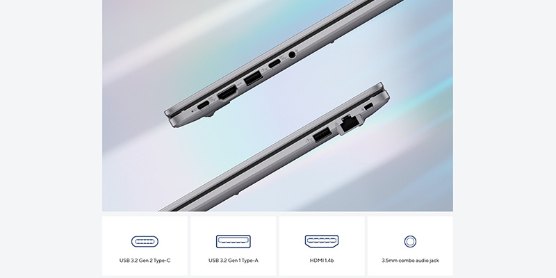 Máy được thiết kế để kết nối ngay lập tức với mọi thiết bị ngoại vi trong văn phòng mà không cần hub chuyển đổi rườm rà. Hệ thống cổng kết nối bao gồm: cổng LAN RJ45 cho mạng dây ổn định, cổng HDMI để trình chiếu, 2 cổng USB-A truyền thống và đặc biệt là 2 cổng USB 3.2 Gen 2 Type-C đa năng (hỗ trợ xuất hình ảnh và sạc Power Delivery). Bên cạnh đó, chuẩn Wi-Fi 6 giúp việc truy cập dữ liệu không dây luôn nhanh chóng và liền mạch.