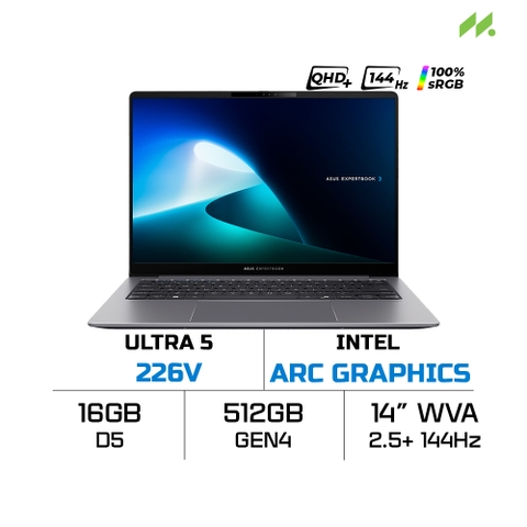 Laptop Asus ExpertBook P5 P5405CSA-NZ0450WS được trang bị vi xử lý Intel Ultra 5 226V tiên tiến với hiệu năng vượt trội cho các tác vụ văn phòng, học tập và sáng tạo nội dung. Kết hợp với RAM 16GB LPDDR5X onboard và ổ cứng SSD 512GB PCIe 4.0 cho tốc độ đọc ghi siêu nhanh, máy mang lại khả năng xử lý đa nhiệm mượt mà và khởi động ứng dụng chỉ trong tích tắc.