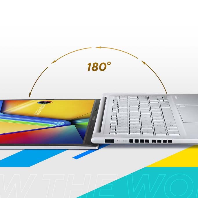 Bản lề 180° Laptop Asus Vivobook 14 OLED thiết kế bản lề 180° để bạn dễ dàng chia sẻ thông tin với người đối diện hơn. |