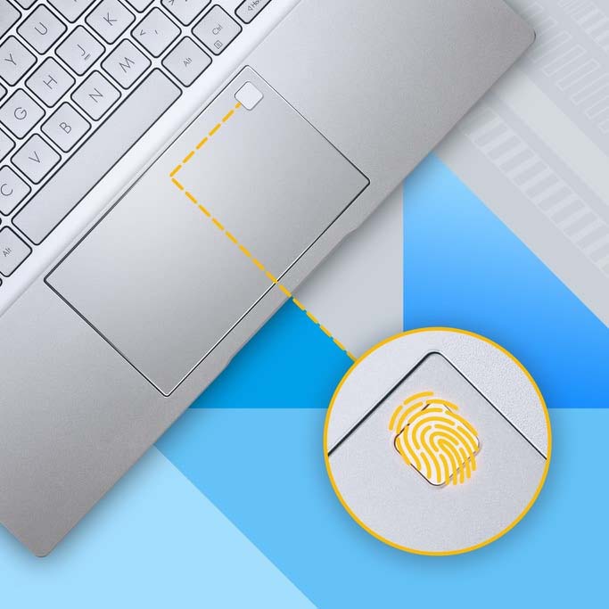 Cảm biến vân tay Laptop Asus Vivobook 14 OLED với cảm biến vân tay tích hợp tại bàn di chuột và Windows Hello, bạn không cần phải gõ mật khẩu cho mỗi lần đăng nhập – chỉ cần một chạm để mở máy tính! |