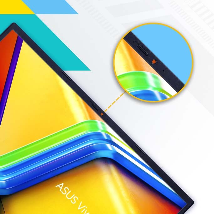 Bảo mật người dùng Laptop Asus Vivobook 14 OLED thiết kế một tấm chắn bảo mật webcam tích hợp trượt qua để bạn có được sự riêng tư. |