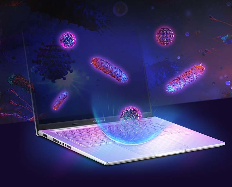 Bảo vệ kháng khuẩn của ASUS Thông thường, bề mặt của laptop chứa hàng ngàn vi khuẩn có hại tiềm ẩn. Để giữ cho máy tính xách tay của bạn được vệ sinh, ASUS Antibiotics Guard là một phương pháp xử lý bề mặt đặc biệt giúp ức chế hơn 99% sự phát triển của vi khuẩn, đảm bảo bề mặt của máy Laptop của bạn sạch sẽ và giảm sự lây lan của vi khuẩn có hại thông qua tiếp xúc. |