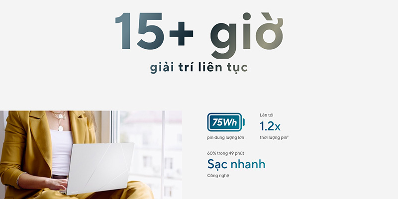 Với pin 75Wh và sạc nhanh 65W, ASUS Zenbook 14 UX3405CA-PZ188WS đảm bảo thời lượng sử dụng kéo dài đến 13–15 giờ tùy điều kiện, phục vụ tốt nhu cầu làm việc cả ngày. Máy tích hợp webcam FHD IR hỗ trợ Windows Hello, TPM 2.0, cần gạt che webcam vật lý tăng cường bảo mật. Bàn phím có đèn nền hỗ trợ làm việc ban đêm dễ dàng. Máy được cài sẵn Windows 11 Home bản quyền, giúp bạn sẵn sàng sử dụng ngay từ khi mở hộp. Chính sách bảo hành 24 tháng chính hãng, cùng nhiều ưu đãi từ MemoryZone như trả góp 0% và giao hàng siêu tốc 2–4H, giúp bạn yên tâm hơn khi đầu tư.