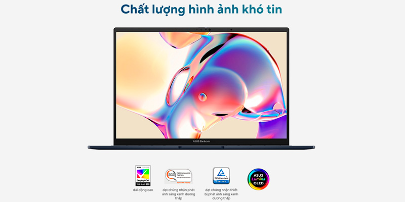 Sở hữu màn hình cảm ứng OLED 14 inch độ phân giải 3K (2880 x 1800), tần số quét 120Hz, độ sáng 500 nits và dải màu 100% DCI-P3, chiếc Zenbook này mang đến trải nghiệm hình ảnh sống động, mượt mà và cực kỳ chi tiết. Màn hình còn đạt chuẩn HDR True Black 600, giúp tái hiện màu đen sâu và độ tương phản vượt trội. Công nghệ OLED chống chói và phản xạ ánh sáng tốt, rất thích hợp khi sử dụng ngoài trời. Thiết kế viền mỏng hiện đại giúp tối ưu không gian hiển thị, cho cảm giác đắm chìm hơn khi làm việc hay giải trí. Sự kết hợp giữa cảm ứng và độ phân giải cao giúp tương tác với nội dung trực quan, nhạy bén và hiệu quả hơn.