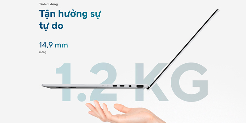 Dù sở hữu cấu hình mạnh mẽ, Laptop Asus Zenbook 14 UX3405CA-PZ204WS vẫn duy trì thiết kế siêu mỏng chỉ 14.9mm và trọng lượng chỉ 1.28kg. Phần vỏ được chế tác từ hợp kim nhôm cao cấp, màu xanh thanh lịch, mang đến cảm giác sang trọng và bền bỉ. Sản phẩm đạt chuẩn độ bền quân đội MIL-STD 810H, cho phép sử dụng ổn định trong nhiều điều kiện môi trường khác nhau như nhiệt độ cao, rung động hay va đập. Thiết kế nhỏ gọn giúp người dùng dễ dàng mang theo khi di chuyển, cực kỳ phù hợp với doanh nhân, freelancer và sinh viên yêu cầu cao về tính cơ động.