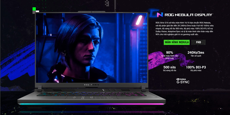 Với màn hình 16 inch độ phân giải QHD+ (2560 x 1600) cùng tần số quét 165Hz, ASUS ROG Strix G16 G614JV-N4369W mang đến hình ảnh sắc nét và chuyển động mượt mà, lý tưởng cho các game thủ chuyên nghiệp. Màn hình hỗ trợ chuẩn màu 100% DCI-P3, giúp tái tạo màu sắc chính xác, phù hợp cho cả thiết kế đồ họa và chỉnh sửa video. Thiết kế viền mỏng tăng cường trải nghiệm xem, mang đến cảm giác đắm chìm hoàn toàn trong trò chơi hoặc nội dung giải trí.
