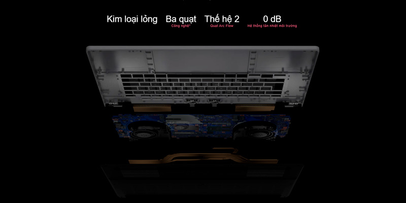 Hệ thống tản nhiệt ROG Intelligent Cooling trên Laptop Gaming ASUS ROG Zephyrus G16 GA605WI-QR090WS đảm bảo hiệu suất tản nhiệt tối ưu, giúp máy luôn hoạt động mát mẻ và ổn định ngay cả khi chơi game cường độ cao. Công nghệ 0dB cho phép quạt tản nhiệt tự động tắt khi máy hoạt động ở mức tải thấp, mang đến không gian làm việc yên tĩnh.