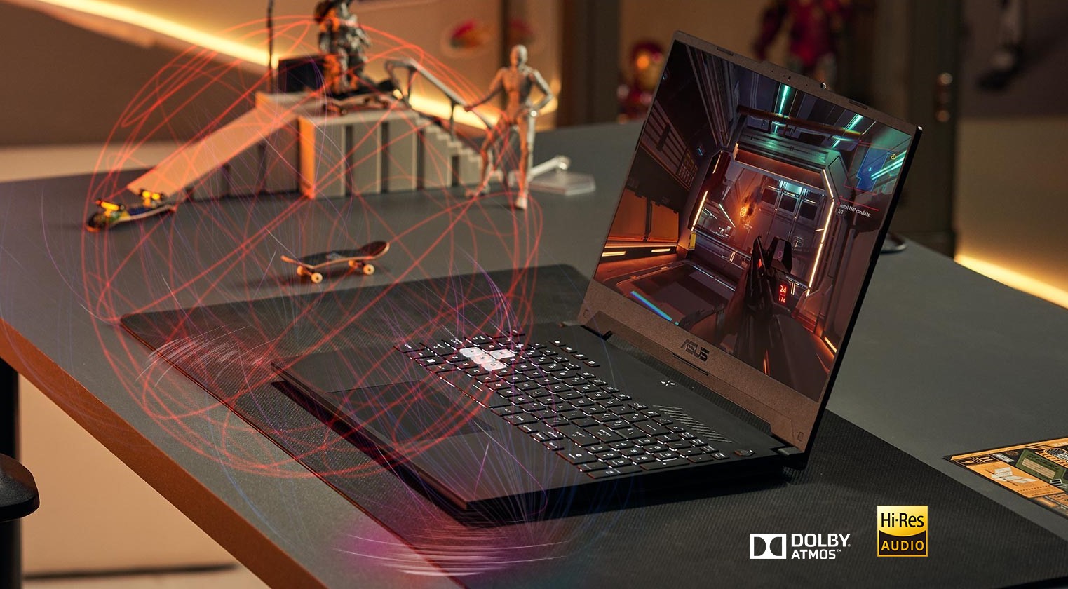 Âm thanh vượt trội Laptop Asus TUF Dash F15 FX517ZC với hệ thống âm thanh vòm Dolby Atmos giúp bạn hoàn toàn đắm chìm hơn với âm thanh trong trẻo tuyệt đối cho hoạt động trò chuyện nhóm nhiều người chơi, phát trực tiếp, v.v |