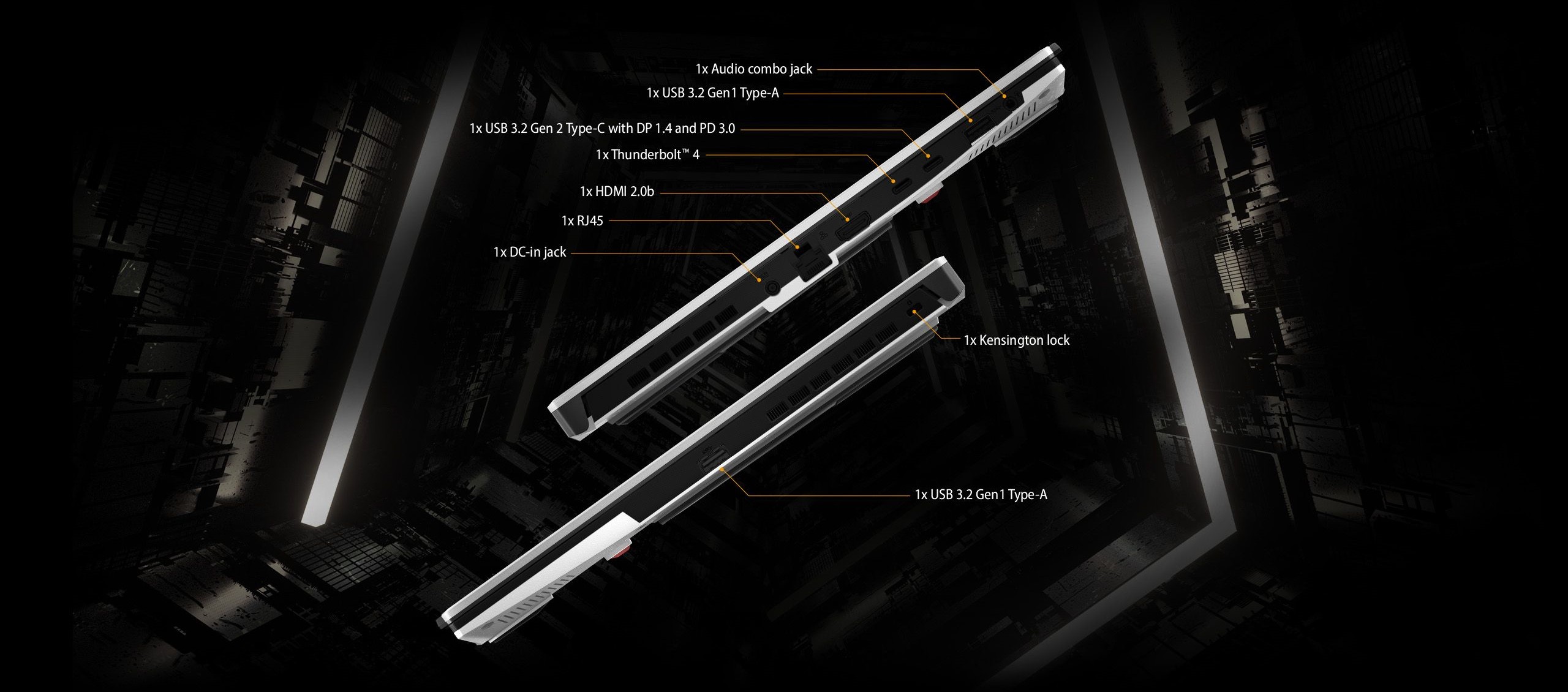 Khả năng kết nối linh hoạt Asus TUF Dash F15 FX517ZC hoạt động đa nhiệm hiệu quả hơn qua cổng ThunderBolt 4 và USB-C với DisplayPort/ G-sync, xem phim 4K UHD trên màn hình lớn hoặc dễ dàng kết nối máy chiếu với HDMI 2.0b. Kết nối các thiết bị ngoại vi qua USB 3.2 Type-A để bạn thoải mái sáng tạo.