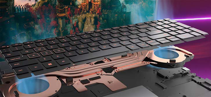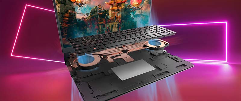 Cải thiện hệ thống tản nhiệt Laptop Gaming Dell G15 5525 thiết kế tản nhiệt lấy cảm hứng từ Alienware kết hợp hệ thống hút gió kép từ phía trên bàn phím và phía dưới laptop. không khí này được tối đa hóa qua các ống đồng để làm mát và tản nhiệt một cách tối ưu nhất. |