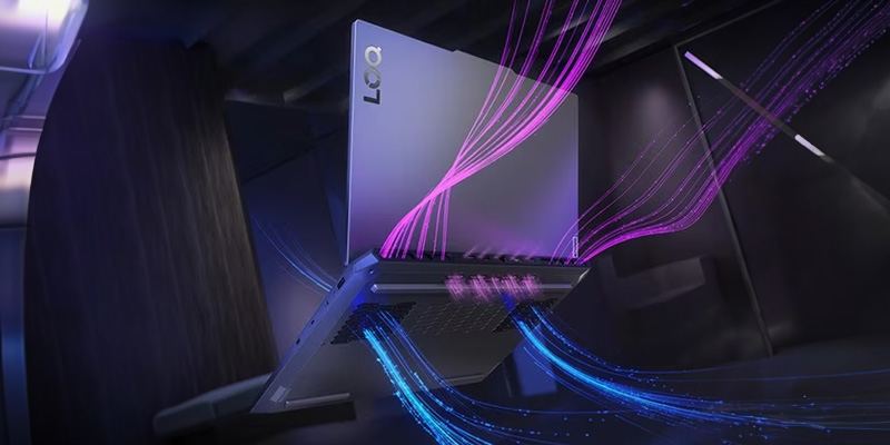 Laptop Gaming Lenovo LOQ 15IAX9 với buồng siêu kín có quạt kép quay theo hướng ngược nhau, dẫn không khí mát di chuyển bên trong buồng, không chỉ làm giảm nhiệt độ da và giảm thiểu tiếng ồn mà còn đảm bảo trải nghiệm chơi game không bị gián đoạn, dù trong một phiên chơi game hoành tráng hay khu vực yên tĩnh của thư viện.