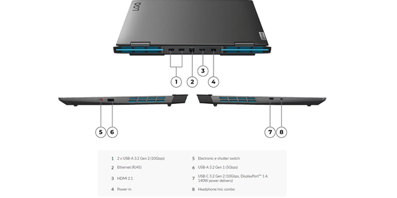 Laptop Gaming Lenovo LOQ 15IRH8 với hệ thống tản nhiệt Legion Coldfront 3.0 gồm hệ thống hút khí thông minh, thiết kế quạt kép turbo, lỗ thông hơi đối lưu nhiệt dưới switch phím và hệ thống xả khí bốn kênh giúp mang lại hiệu năng tối đa cho trò chơi.