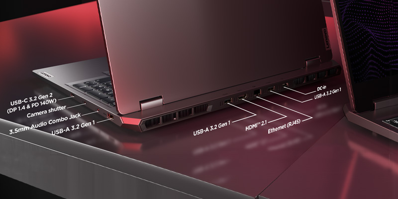 Laptop Gaming Lenovo LOQ 15IRX9 83DV00ERVN được trang bị đầy đủ các cổng kết nối thông dụng như USB-C hỗ trợ xuất hình và sạc Power Delivery, HDMI 2.1, LAN RJ-45, jack cắm tai nghe/mic,... cho phép bạn dễ dàng kết nối với các thiết bị ngoại vi khác.