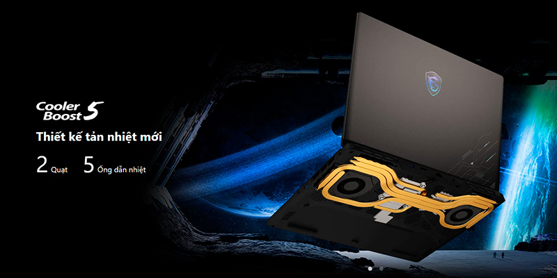 MSI Crosshair 16 HX AI được trang bị hệ thống tản nhiệt Cooler Boost với 2 quạt và nhiều ống đồng, tối ưu khả năng làm mát ngay cả khi CPU và GPU hoạt động ở hiệu suất cao. Thiết kế khe tản nhiệt thông minh đảm bảo luồng gió được lưu thông liên tục, giúp máy luôn mát và vận hành ổn định kể cả khi chơi game nặng hoặc làm việc trong thời gian dài. Đây là yếu tố quan trọng đảm bảo hiệu suất bền vững cho game thủ và content creator chuyên nghiệp.