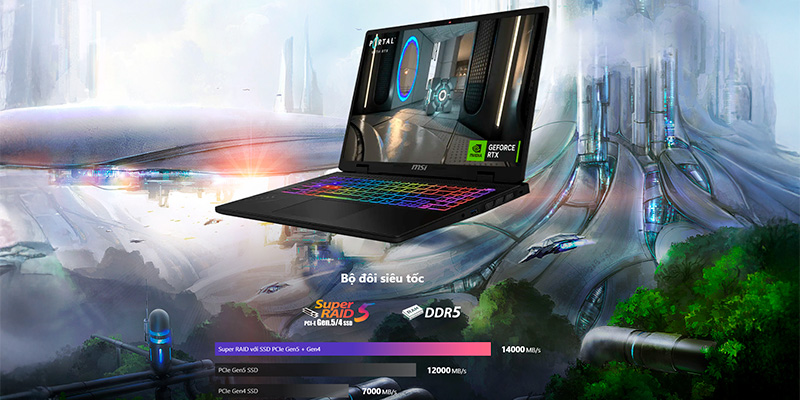 RAM DDR5 tốc độ cao và SSD Gen4 – hiệu suất xử lý dữ liệu nhanh chóng
