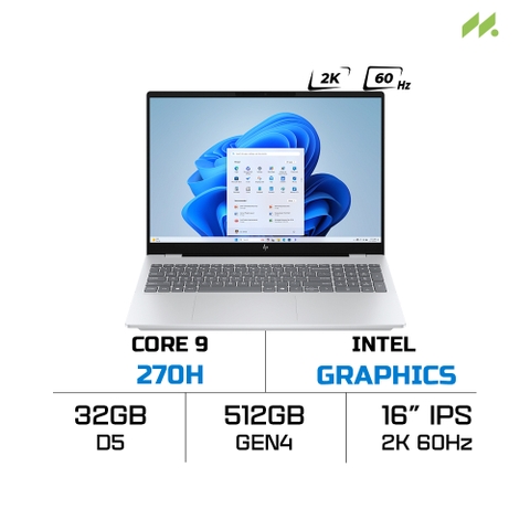HP OmniBook 7 16-az0040TU sở hữu cấu hình mạnh mẽ ẩn trong vẻ ngoài thanh lịch khi được trang bị bộ vi xử lý Intel Core 9 270H. Với kiến trúc 14 nhân 20 luồng và xung nhịp tối đa lên tới 5.8 GHz, con chip dòng H hiệu năng cao này thường chỉ thấy trên các dòng laptop gaming hay máy trạm. Điều này giúp máy xử lý nhẹ nhàng các tác vụ tính toán phức tạp, lập trình, biên tập video hay chạy máy ảo một cách mượt mà nhất.