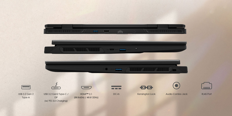Laptop MSI Creator M16 HX C14VFG-040VN hỗ trợ cổng kết nối đa dạng