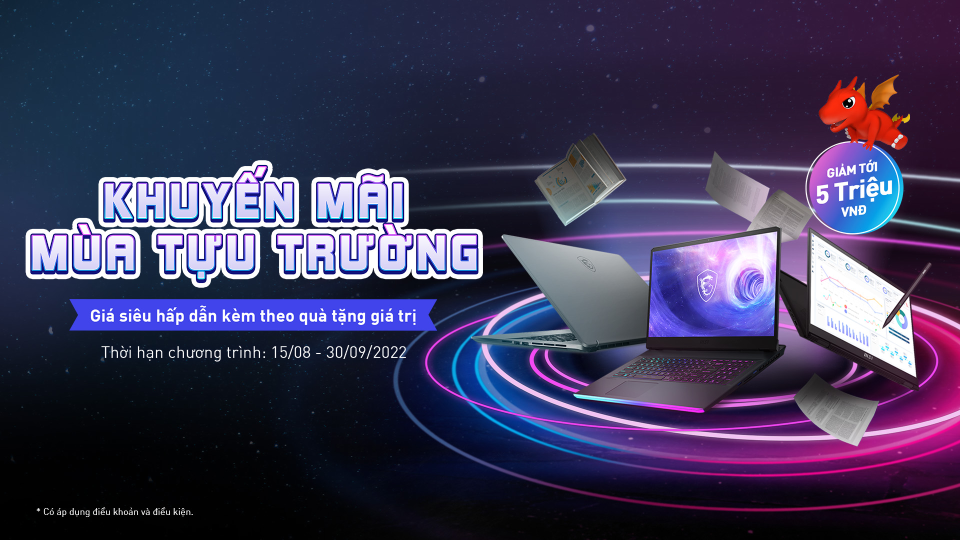 Mùa tựu trường đã đến, đây cũng là dịp các bạn học sinh – sinh viên trang bị các công cụ cần thiết để chuẩn bị cho một năm học thật hiệu quả, vì vậy, MSI đã triển khai chương trình khuyến mãi dành tặng cho các bạn tới đây.