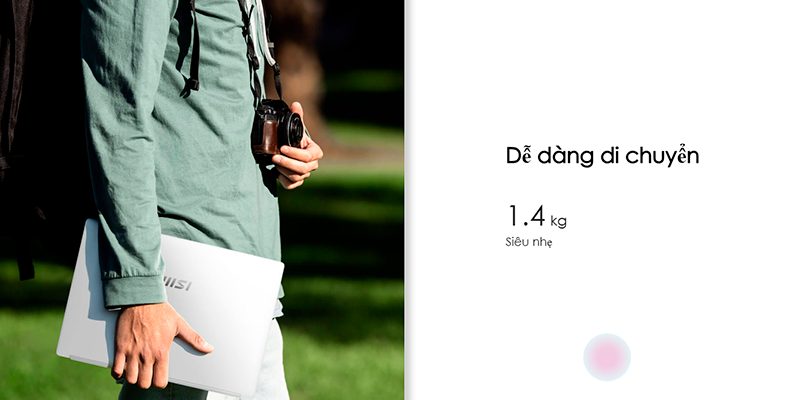 Laptop MSI Modern 14 C12MO-660VN được thiết kế với kiểu dáng mỏng nhẹ, chỉ 19.35mm và trọng lượng 1.4kg, rất thuận tiện cho người dùng di chuyển thường xuyên như sinh viên, nhân viên văn phòng hoặc freelancer. Lớp vỏ màu Classic Black vừa thanh lịch, vừa bền bỉ, thích hợp với nhiều môi trường làm việc chuyên nghiệp. Dù mang trong mình màn hình 14 inch, máy vẫn nhỏ gọn và dễ bỏ vào balo, túi xách mà không gây cồng kềnh.