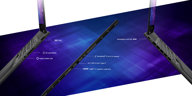Laptop MSI Prestige 16 AI+ Evo B2VMG-016VN hỗ trợ nhiều cổng kết nối hiện đại như Thunderbolt 4, USB Type-C, HDMI và đầu đọc thẻ SD. Tính năng Thunderbolt 4 cung cấp tốc độ truyền tải dữ liệu lên đến 40Gbps, đồng thời hỗ trợ sạc nhanh và xuất hình ảnh độ phân giải cao. Khả năng kết nối này đáp ứng hoàn hảo nhu cầu làm việc và giải trí của người dùng.