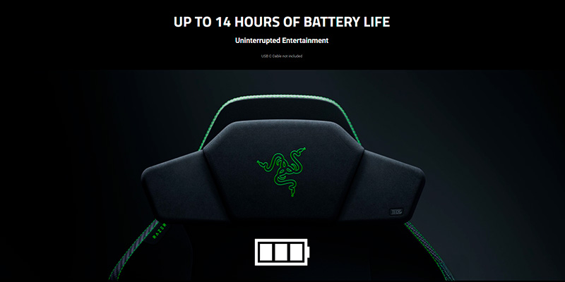 Với viên pin 5400mAh, Razer Clio mang lại thời lượng sử dụng liên tục lên đến 14 giờ chỉ sau một lần sạc đầy trong khoảng 6 giờ. Thiết bị sử dụng chuẩn sạc USB-C (3A), tuy nhiên không đi kèm dây sạc, giúp người dùng linh hoạt lựa chọn cáp chất lượng cao phù hợp. Đây là giải pháp tối ưu cho những ai cần âm thanh mạnh mẽ và bền bỉ trong cả ngày dài, không lo gián đoạn giữa chừng.