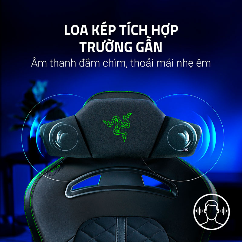 Loa gối đầu Razer Clio THX Spatial Audio là phụ kiện gaming độc đáo với thiết kế gối đầu tích hợp loa, mang đến trải nghiệm âm thanh sống động mà không cần đeo tai nghe. Sản phẩm được bọc đệm dày êm ái, vừa giúp thư giãn, vừa tạo cảm giác thoải mái trong suốt nhiều giờ chơi game hoặc làm việc. Với khả năng điều chỉnh dây đeo từ 30 – 49 cm, Clio phù hợp với nhiều dòng ghế như Iskur V2, Iskur V2 X và Enki Line, biến góc gaming trở nên hiện đại và khác biệt.