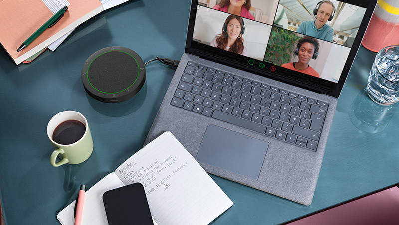 Loại bỏ tiếng ồn Loa hội nghị Jabra Speak2 55 MS Teams trang bị mic loại bỏ tiếng vang và khử tiếng ồn được tối ưu hóa để bạn có thể đàm thoại ngay cả trong không gian làm việc ồn ào. |