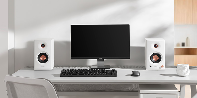 Edifier MR5 White có thiết kế tinh tế với tông trắng chủ đạo, mặt trước điểm viền loa nổi bật, tạo cảm giác cao cấp, chuyên nghiệp và hài hòa với không gian nội thất hiện đại. Thùng loa bằng MDF chống cộng hưởng, giúp âm thanh không bị biến dạng, tái tạo trung thực và bền bỉ theo thời gian. Kích thước hợp lý 159 x 264 x 280mm (loa chính) và 257mm (loa phụ) giúp dễ dàng bố trí tại bàn làm việc, kệ sách hoặc studio mini tại nhà.