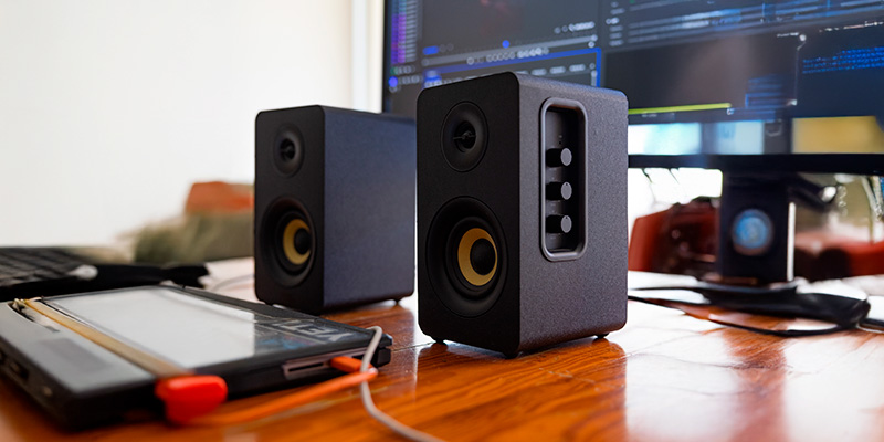 Loa tích hợp bảng điều khiển cạnh bên với nút chỉnh âm lượng, bass và treble, giúp người dùng cá nhân hóa âm thanh theo sở thích. Đèn LED hiển thị trạng thái đầu vào trực quan, dễ dàng nhận biết chế độ kết nối. Đi kèm trong hộp sản phẩm có cáp nguồn và cáp kết nối loa trong suốt, thuận tiện cho việc setup nhanh chóng.