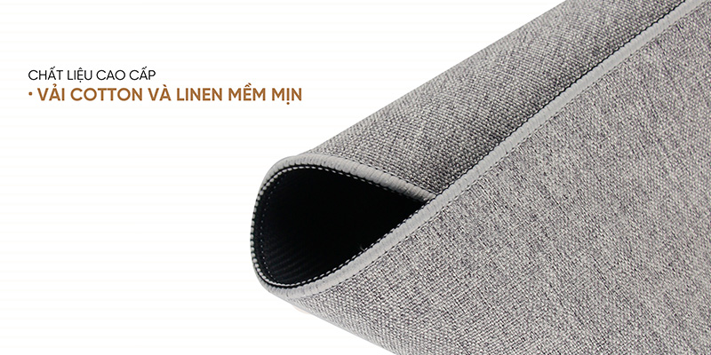 Sản phẩm sử dụng vải cotton và linen cao cấp, mềm mịn và bền bỉ, mang lại cảm giác dễ chịu ngay cả khi sử dụng trong thời gian dài. Chất liệu này không chỉ thân thiện với làn da mà còn bảo vệ môi trường nhờ khả năng tái chế. Bề mặt vải không nhăn, không xơ, chống mài mòn giúp chuột di chuyển mượt mà, chính xác, phù hợp với mọi loại chuột như quang, laser hay không dây. Nhờ đó, người dùng có thể yên tâm sử dụng cho cả công việc văn phòng lẫn các hoạt động giải trí như chơi game hay thiết kế đồ họa.