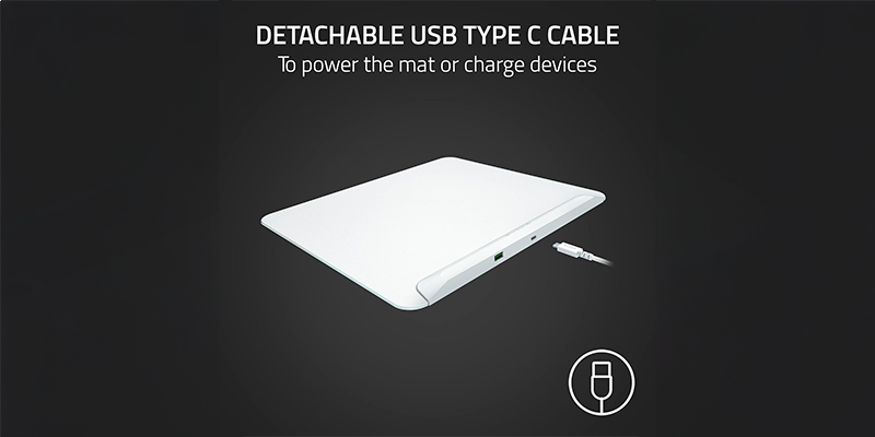 Lót chuột Razer Firefly V2 Pro được trang bị cáp USB Type-C có thể tháo rời, giúp bạn dễ dàng di chuyển hoặc chuyển đổi mục đích sử dụng. Khi không chơi game, bạn có thể tận dụng cáp này để sạc pin cho chuột không dây hoặc thiết bị di động, tối ưu không gian và công năng cho bàn chơi game hoặc làm việc chuyên nghiệp.