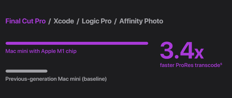 Hiệu suất đáng kinh ngạc CPU 8 nhân trong M1 mang đến hiệu suất cao, nó kết hợp bốn lõi hiệu suất và bốn lõi hiệu quả để mang lại hiệu suất CPU tốt nhất trên mỗi watt cho cả tác vụ đơn luồng và đa luồng. Điều này dẫn đến một bước nhảy vọt về hiệu suất ngay cả khi tiêu thụ ít điện năng hơn. |