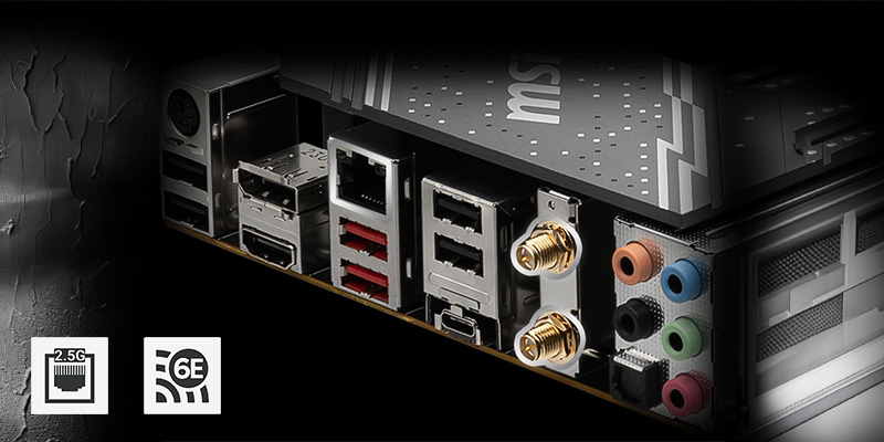 Mainboard PC MSI B760 GAMING PLUS WIFI cung cấp các tùy chọn kết nối mới nhất cho mạng siêu mượt và truyền tệp nhanh chóng, kết hợp mạng không dây Wifi 6E cùng mạng Lan 2.5Gb với khả năng kết nối tốc độ vượt trội để bạn chơi game mượt mà hơn, không bị giật lag.