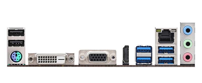 1 x PS/2 chuột, bàn phím 1 x D-Sub 1 x DVI-D 1 x HDMI 1 x RJ45 4 x USB 3.2 Gen 1 Type-A 2 x USB 2.0 3 x Audio jack |