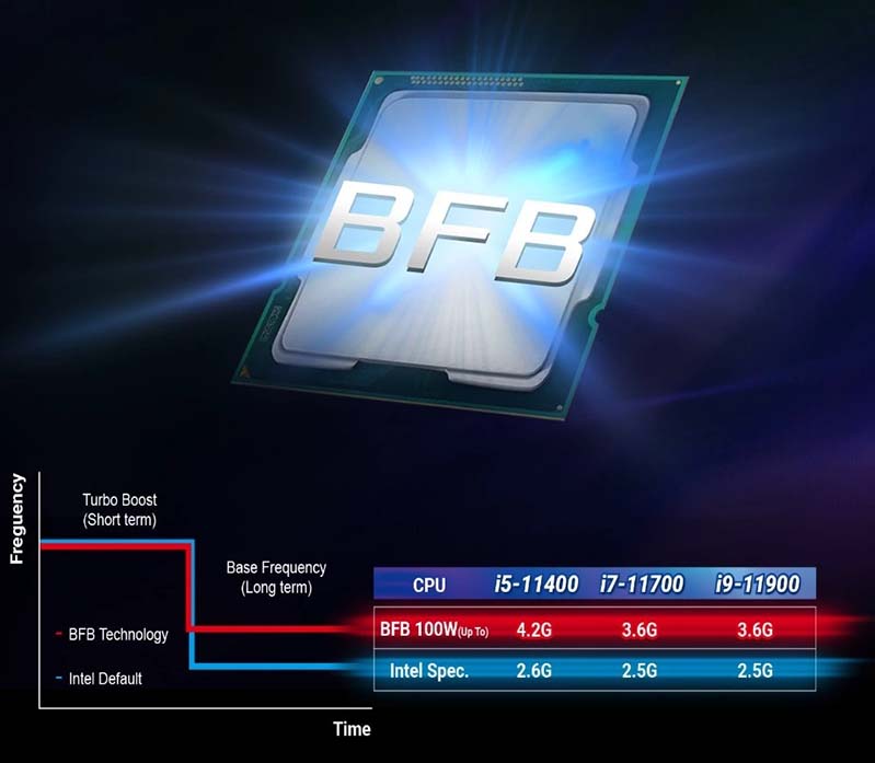 Công nghệ ép xung cơ bản(BFB) Thông qua Công nghệ ASRock BFB (Base Frequency Boost), người dùng có thể cài đặt các CPU không phải dòng K vào các bo mạch chủ 500 Series của ASRock và tận hưởng khả năng tăng tần số cơ bản ngay lập tức với sức mạnh tiềm ẩn của bộ vi xử lý. |