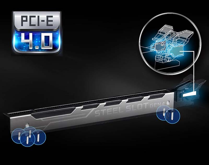 Khe cắm PCIe 4.0 gia cố ASRock B660M Pro RS được gia cố bằng thép giúp cải thiện tín hiệu và tối ưu hóa độ ổn định một cách đột phá với cổng PCIe 4.0 cho băng thông ltín hiệu ổn định, cùng khả năng bảo vệ chắc chắn. |
