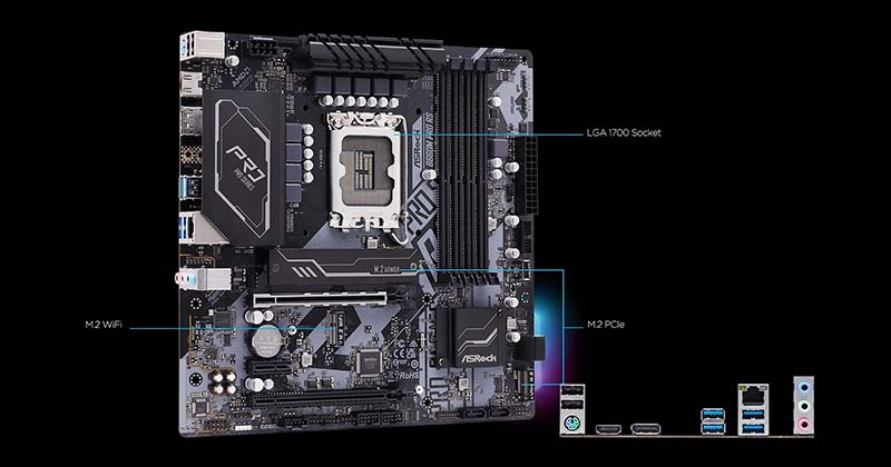 Cổng kết nối ASRock B660M Pro RS được trang bị đẩy đủ các cổng kết nối để bạn dễ dàng lắp đặt.