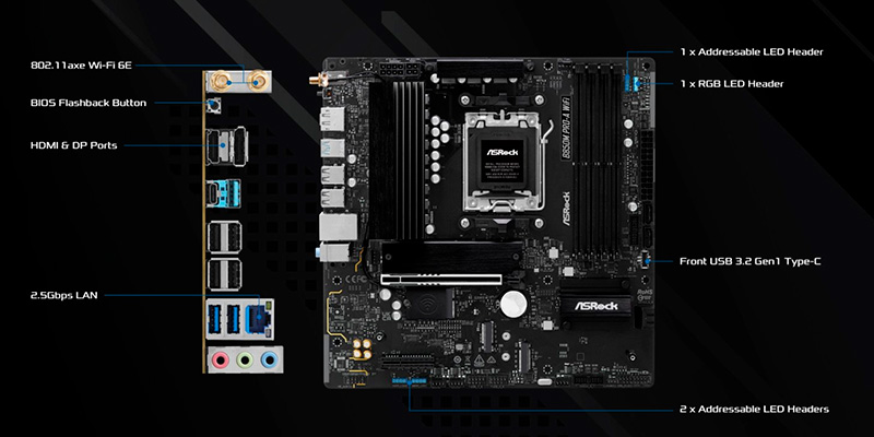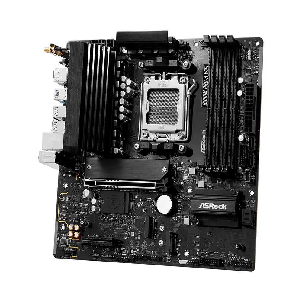ASRock B850M Pro-A WiFi sở hữu thiết kế Micro-ATX nhỏ gọn nhưng vẫn đảm bảo đầy đủ tính năng cao cấp, giúp tối ưu không gian lắp đặt mà không làm ảnh hưởng đến hiệu suất. Bố cục linh hoạt giúp người dùng dễ dàng nâng cấp phần cứng trong tương lai, đồng thời hệ thống linh kiện chất lượng cao đảm bảo độ bền lâu dài, mang lại sự an tâm khi sử dụng.