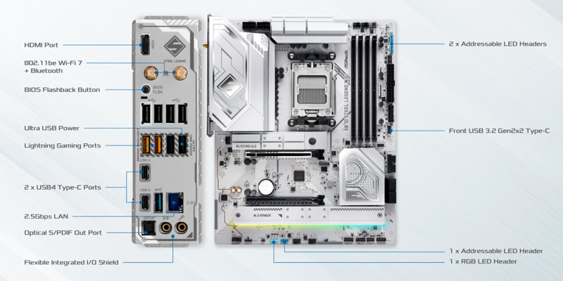 ASRock X870 STEEL LEGEND WIFI mang đến khả năng kết nối siêu tốc với cổng LAN 2.5Gbps và WiFi 6E. Bạn sẽ tận hưởng tốc độ internet cực nhanh và ổn định, giúp bạn tải lên và tải xuống dữ liệu lớn một cách dễ dàng, cũng như trải nghiệm chơi game online mượt mà không giật lag.