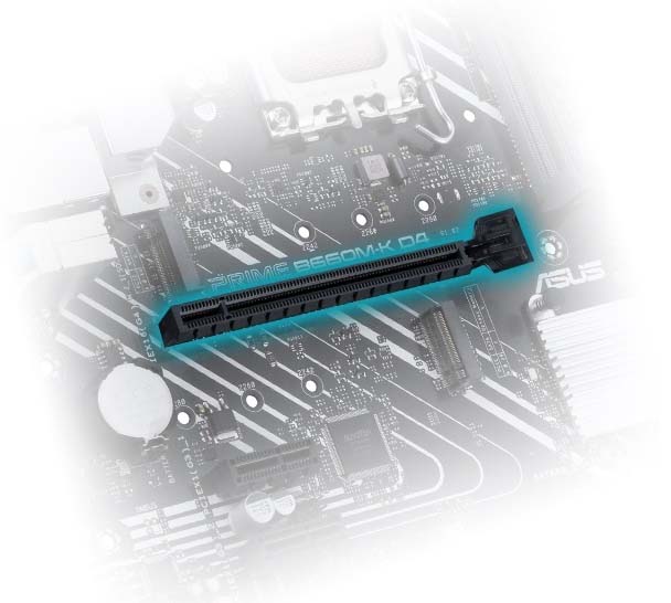 PCIe 4.0 slot Main ASUS PRIME B660M-K D4 được thiết kế dành riêng cho các CPU Intel Core thế hệ 12 và cung cấp kết nối PCIe 4.0 cho các GPU mới nhất. Băng thông rộng và tốc độ truyền siêu nhanh cho phép bạn có thể xử lý tải cao một cách dễ dàng. |
