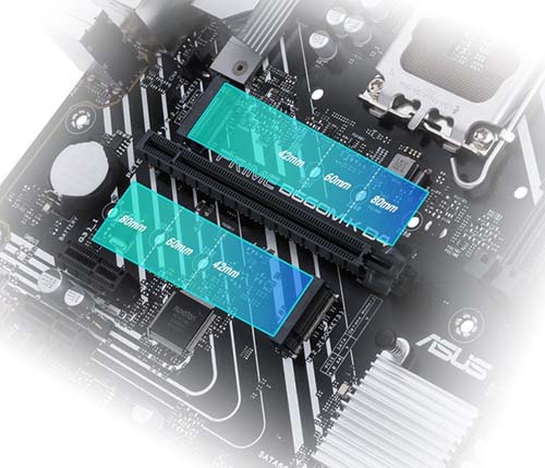 Khe M.2 PCIe Main ASUS PRIME B660M-K D4 cung cấp khe cắm M.2 hỗ trợ tốc độ truyền dữ liệu lên đến 64 Gbps qua PCIe 4.0, cho phép thời gian khởi động và tải ứng dụng nhanh hơn. |