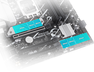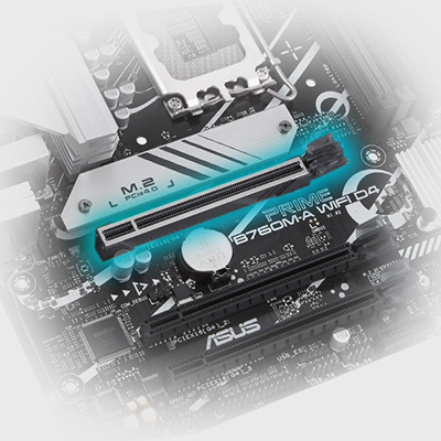 PCIe 4.0 slot PRIME B760M-A WIFI D4-CSM được thiết kế dành riêng cho các CPU Intel Core thế hệ 12 và cung cấp kết nối PCIe 4.0 cho các GPU mới nhất. Băng thông rộng và tốc độ truyền siêu nhanh cho phép bạn có thể xử lý tải cao một cách dễ dàng. |
